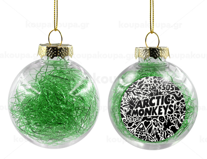 Arctic Monkeys, Transparent Christmas tree ball ornament with green filling 8cm
