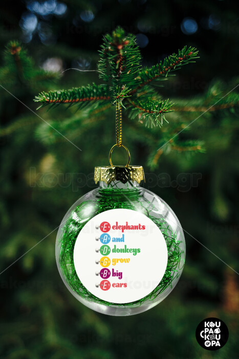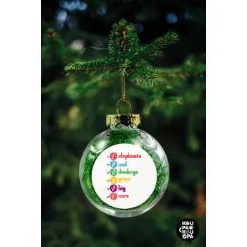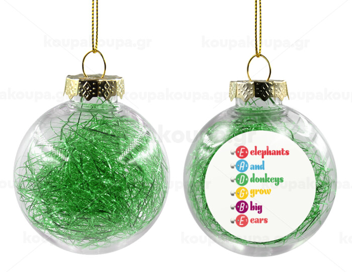 Elephants And Donkeys Grow Big Ears, Transparent Christmas tree ball ornament with green filling 8cm