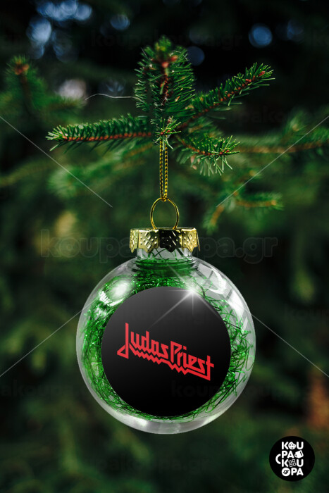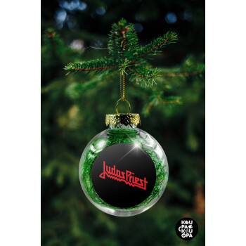 Judas Priest, Transparent Christmas tree ball ornament with green filling 8cm