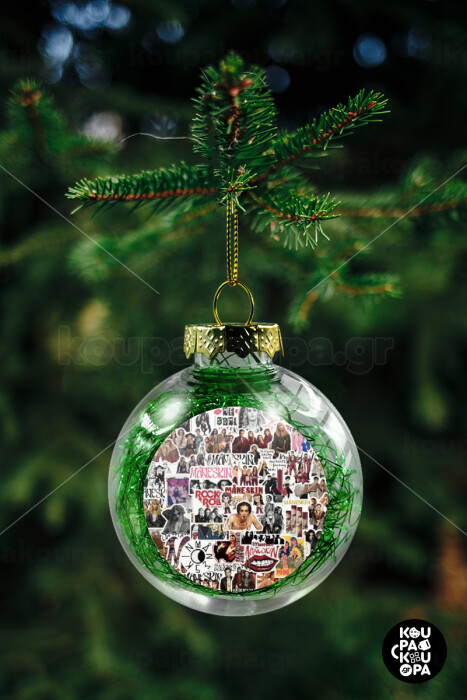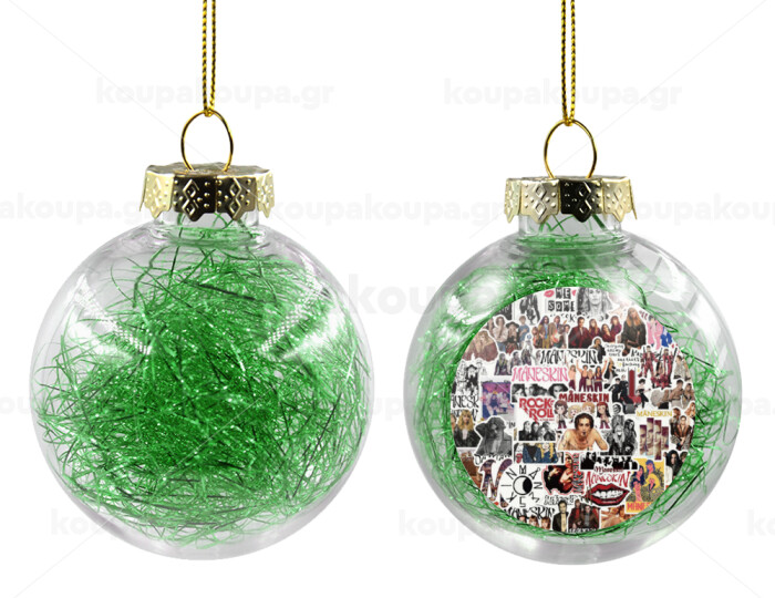 Maneskin stickers, Transparent Christmas tree ball ornament with green filling 8cm