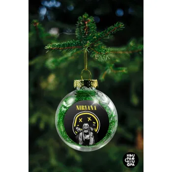 Nirvana, Transparent Christmas tree ball ornament with green filling 8cm