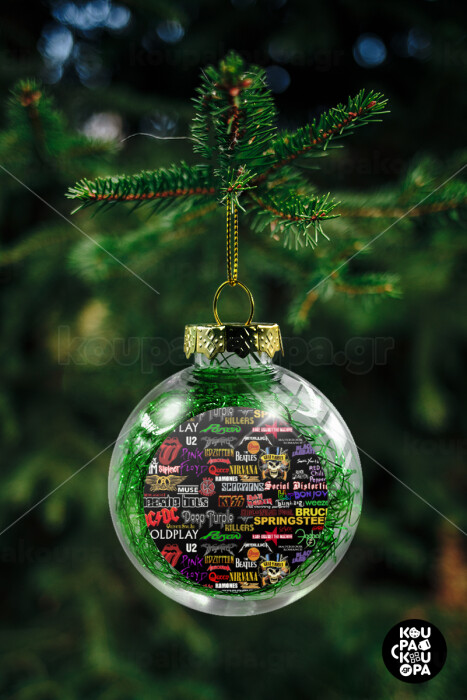 Rock Bands, Transparent Christmas tree ball ornament with green filling 8cm