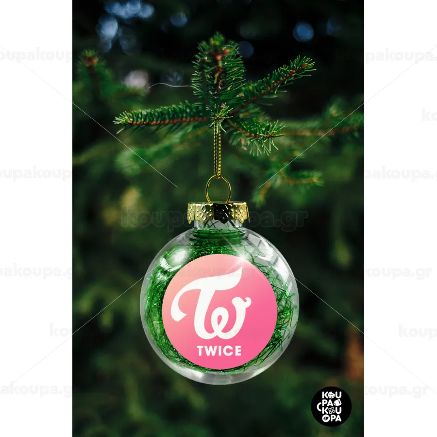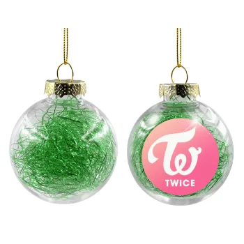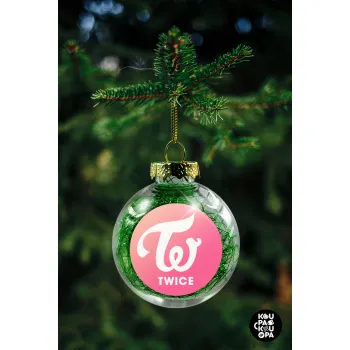 Twice, Transparent Christmas tree ball ornament with green filling 8cm