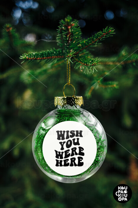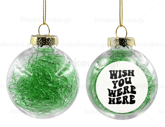Wish you were here, Transparent Christmas tree ball ornament with green filling 8cm