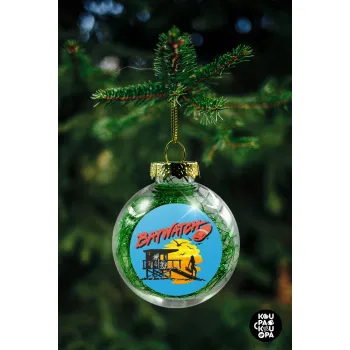 Baywatch, Transparent Christmas tree ball ornament with green filling 8cm
