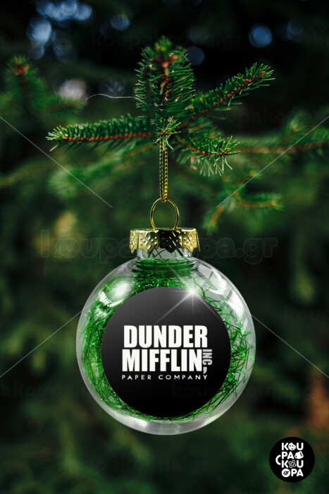 Dunder Mifflin, Inc Paper Company, Transparent Christmas tree ball ornament with green filling 8cm