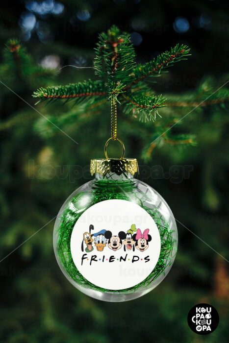 Friends characters, Transparent Christmas tree ball ornament with green filling 8cm