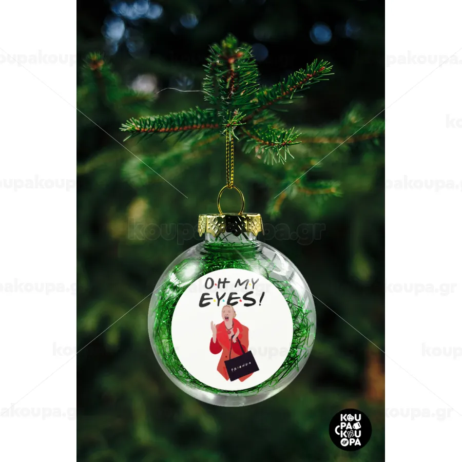 Friends,. oh my eyes Phoebe, Transparent Christmas tree ball ornament with green filling 8cm