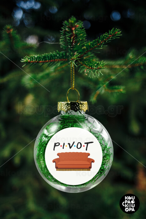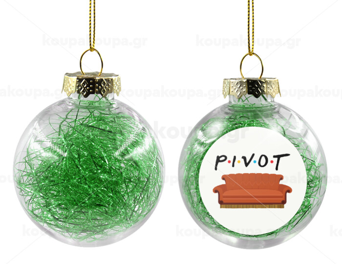 Friends Pivot, Transparent Christmas tree ball ornament with green filling 8cm