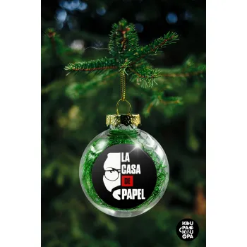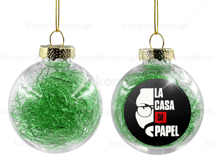 La casa de papel, Transparent Christmas tree ball ornament with green filling 8cm