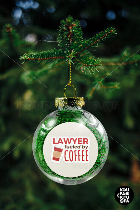 Lawyer fueled by coffee, Transparent Christmas tree ball ornament with green filling 8cm