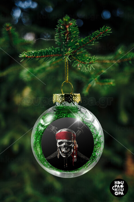 Pirates of the Caribbean, Transparent Christmas tree ball ornament with green filling 8cm