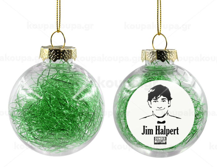 The office Jim Halpert, Transparent Christmas tree ball ornament with green filling 8cm