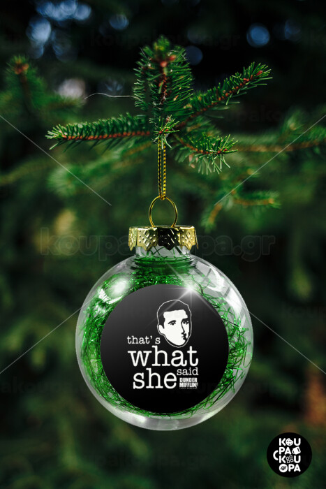 The office Michael That's what she said, Transparent Christmas tree ball ornament with green filling 8cm