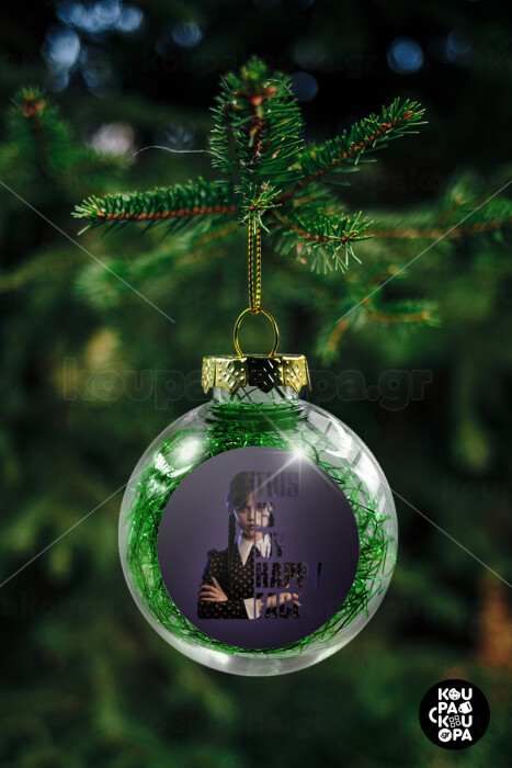 Wednesday, This is my happy face, Transparent Christmas tree ball ornament with green filling 8cm
