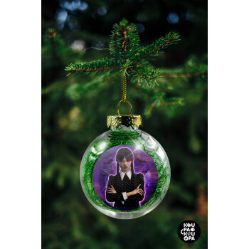 Wednesday moonlight, Transparent Christmas tree ball ornament with green filling 8cm