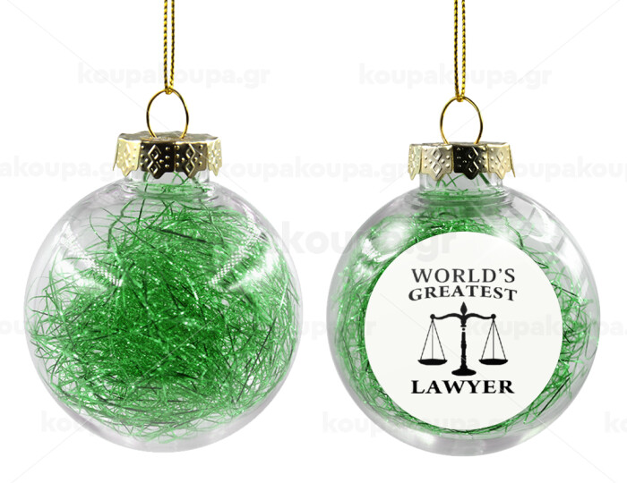 World's greatest Lawyer, Transparent Christmas tree ball ornament with green filling 8cm