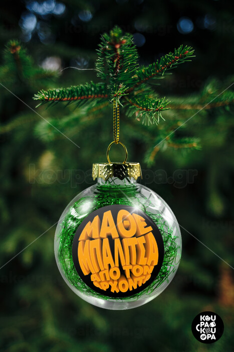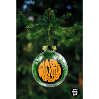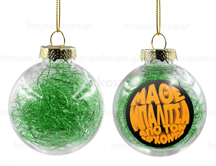 Μάθε μπαλίτσα από τον Άρχοντα, Transparent Christmas tree ball ornament with green filling 8cm