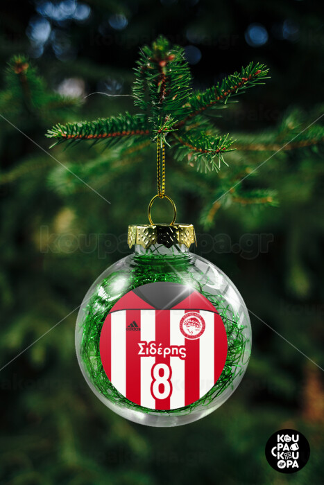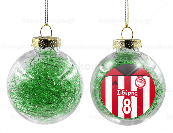 Ολυμπιακός εμφάνιση, Transparent Christmas tree ball ornament with green filling 8cm