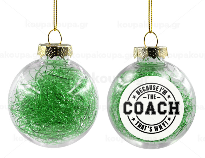 Because i'm the Coach, Transparent Christmas tree ball ornament with green filling 8cm