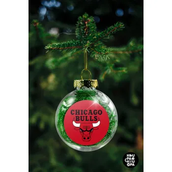 Chicago Bulls, Transparent Christmas tree ball ornament with green filling 8cm