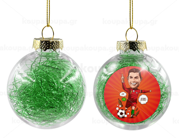 Cristiano Ronaldo, Transparent Christmas tree ball ornament with green filling 8cm
