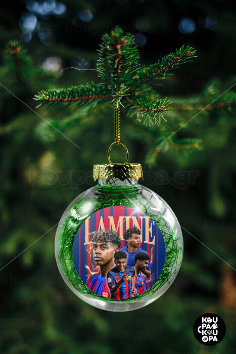 lamine yamal FCB, Transparent Christmas tree ball ornament with green filling 8cm