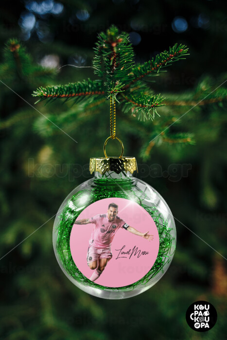 Lionel Messi inter miami jersey, Transparent Christmas tree ball ornament with green filling 8cm