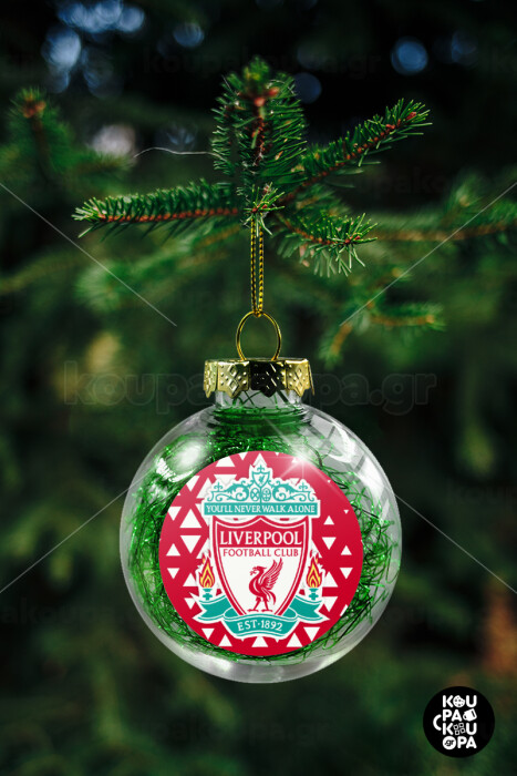 Liverpool, Transparent Christmas tree ball ornament with green filling 8cm