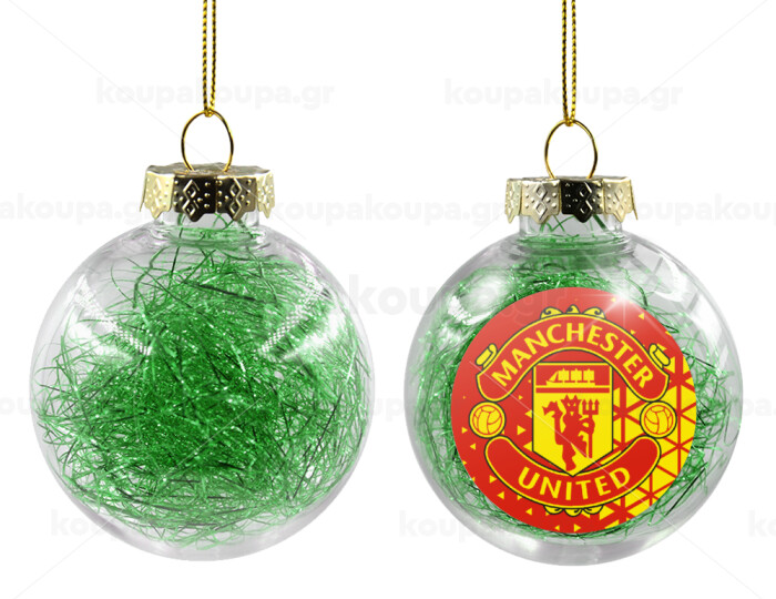 Manchester United F.C., Transparent Christmas tree ball ornament with green filling 8cm
