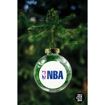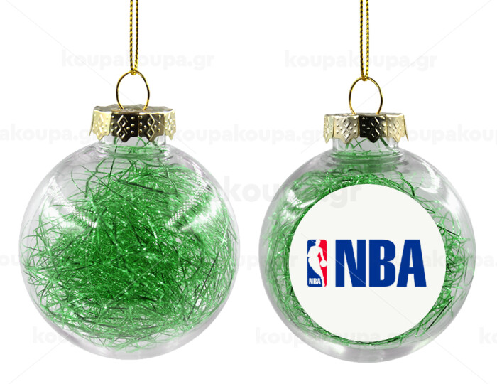 NBA, Transparent Christmas tree ball ornament with green filling 8cm