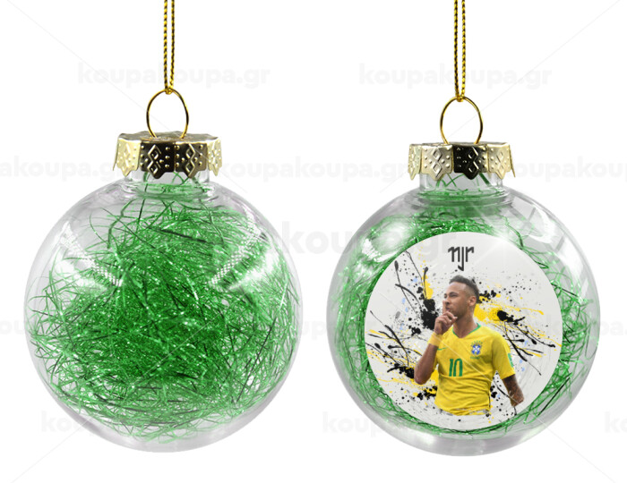 Neymar JR, Transparent Christmas tree ball ornament with green filling 8cm