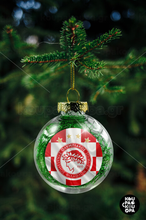 Olympiakos flag, Transparent Christmas tree ball ornament with green filling 8cm