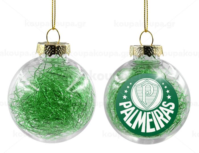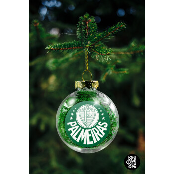 Palmeiras, Transparent Christmas tree ball ornament with green filling 8cm