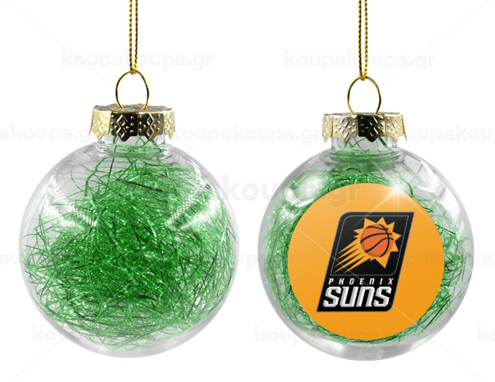 Phoenix Suns, Transparent Christmas tree ball ornament with green filling 8cm