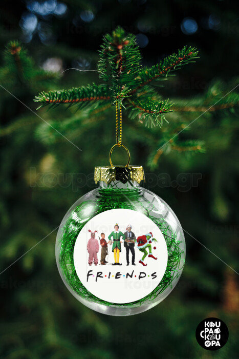 Christmas FRIENDS, Transparent Christmas tree ball ornament with green filling 8cm