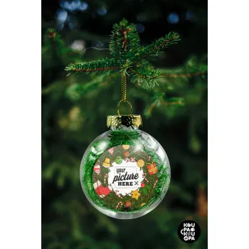 PHOTO Christmas twitch, Transparent Christmas tree ball ornament with green filling 8cm