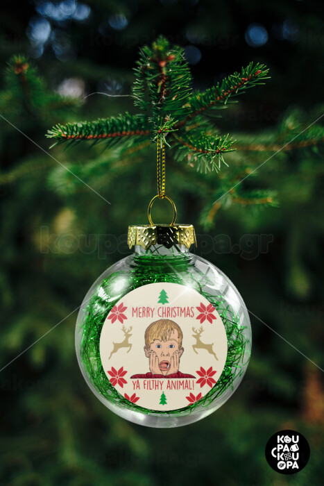 home alone, Merry Christmas ya filthy animal, Transparent Christmas tree ball ornament with green filling 8cm