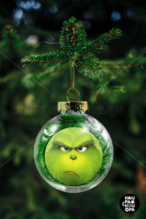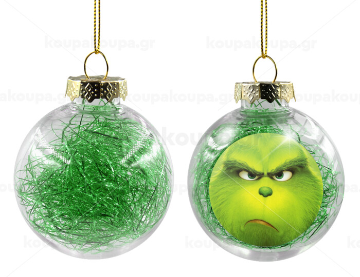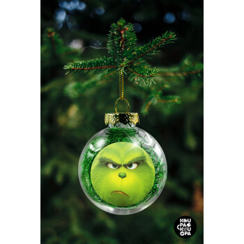 mr grinch, Transparent Christmas tree ball ornament with green filling 8cm