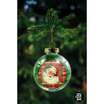 Santa Claus, Transparent Christmas tree ball ornament with green filling 8cm