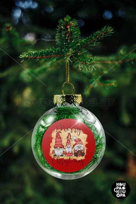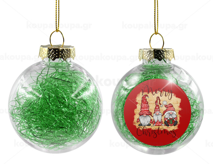 Xmas Elves, Transparent Christmas tree ball ornament with green filling 8cm