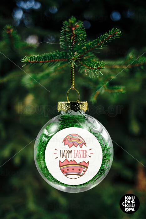 Happy easter egg, Transparent Christmas tree ball ornament with green filling 8cm