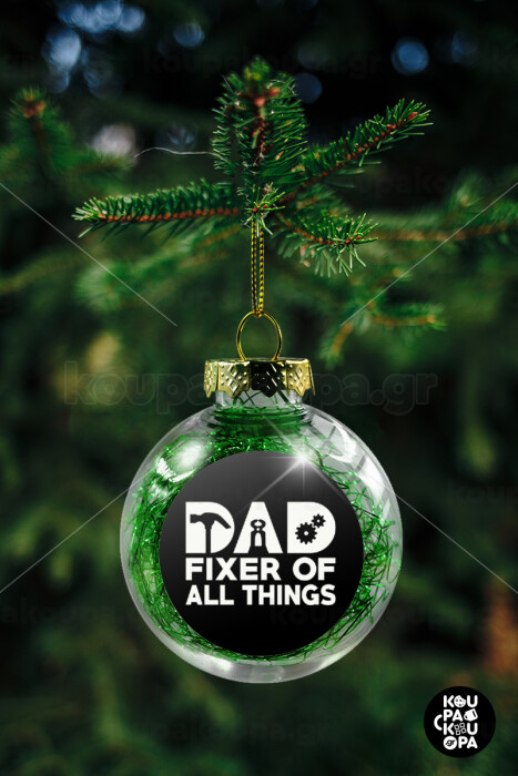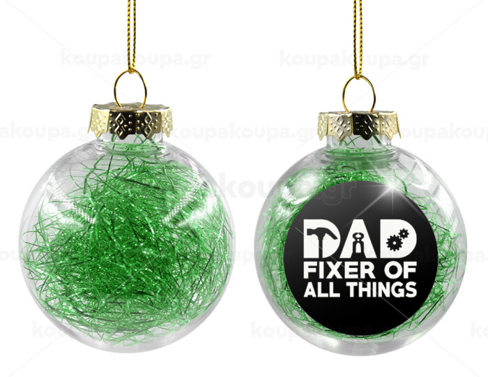 DAD, fixer of all thinks, Transparent Christmas tree ball ornament with green filling 8cm