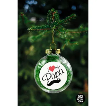 I Love my papa, Transparent Christmas tree ball ornament with green filling 8cm