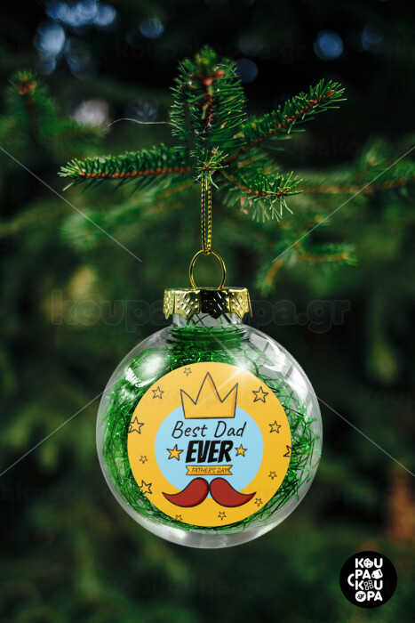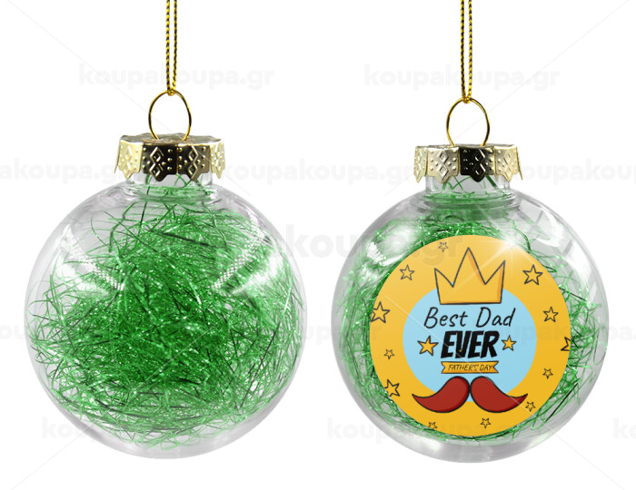 King, Best dad ever, Transparent Christmas tree ball ornament with green filling 8cm