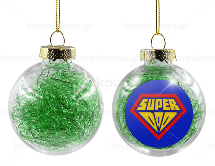 Super Dad 3D, Transparent Christmas tree ball ornament with green filling 8cm