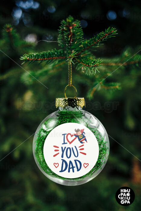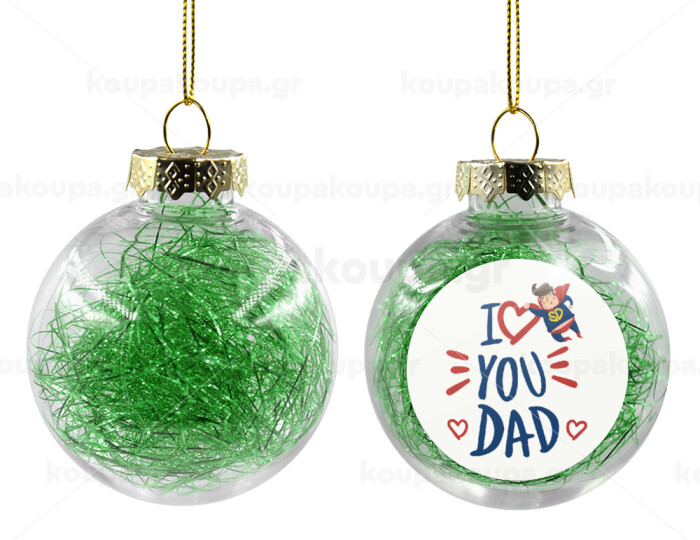 Super Dad, Transparent Christmas tree ball ornament with green filling 8cm