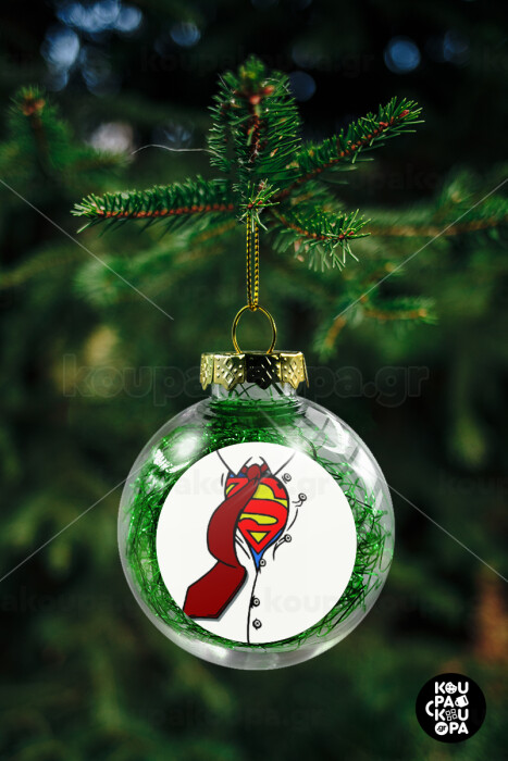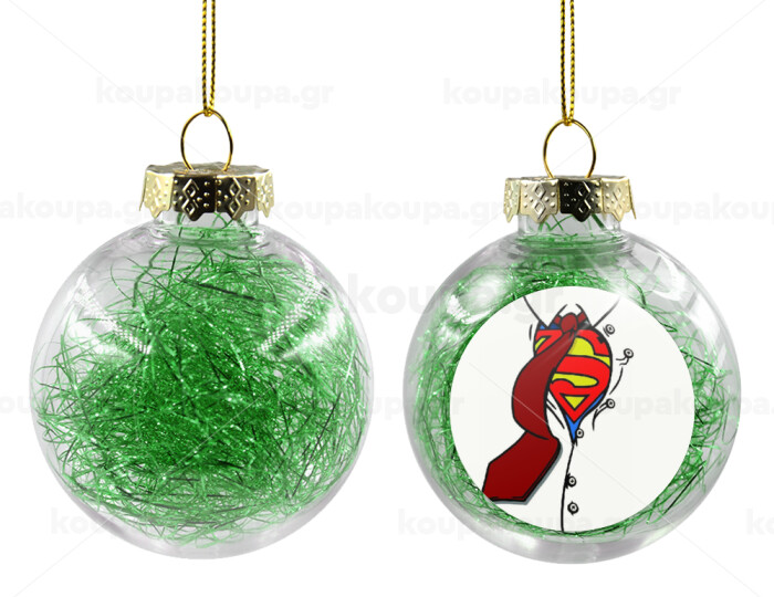 SuperDad, Transparent Christmas tree ball ornament with green filling 8cm