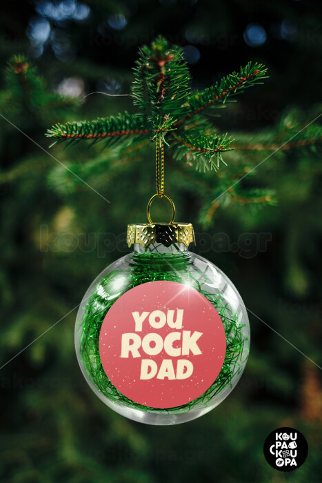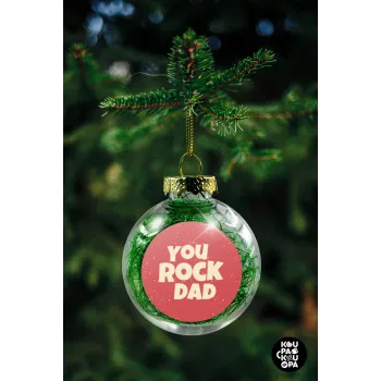 YOU ROCK DAD, Transparent Christmas tree ball ornament with green filling 8cm