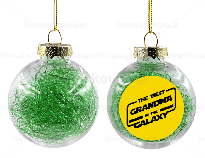 The Best GRANDMA in the Galaxy, Transparent Christmas tree ball ornament with green filling 8cm